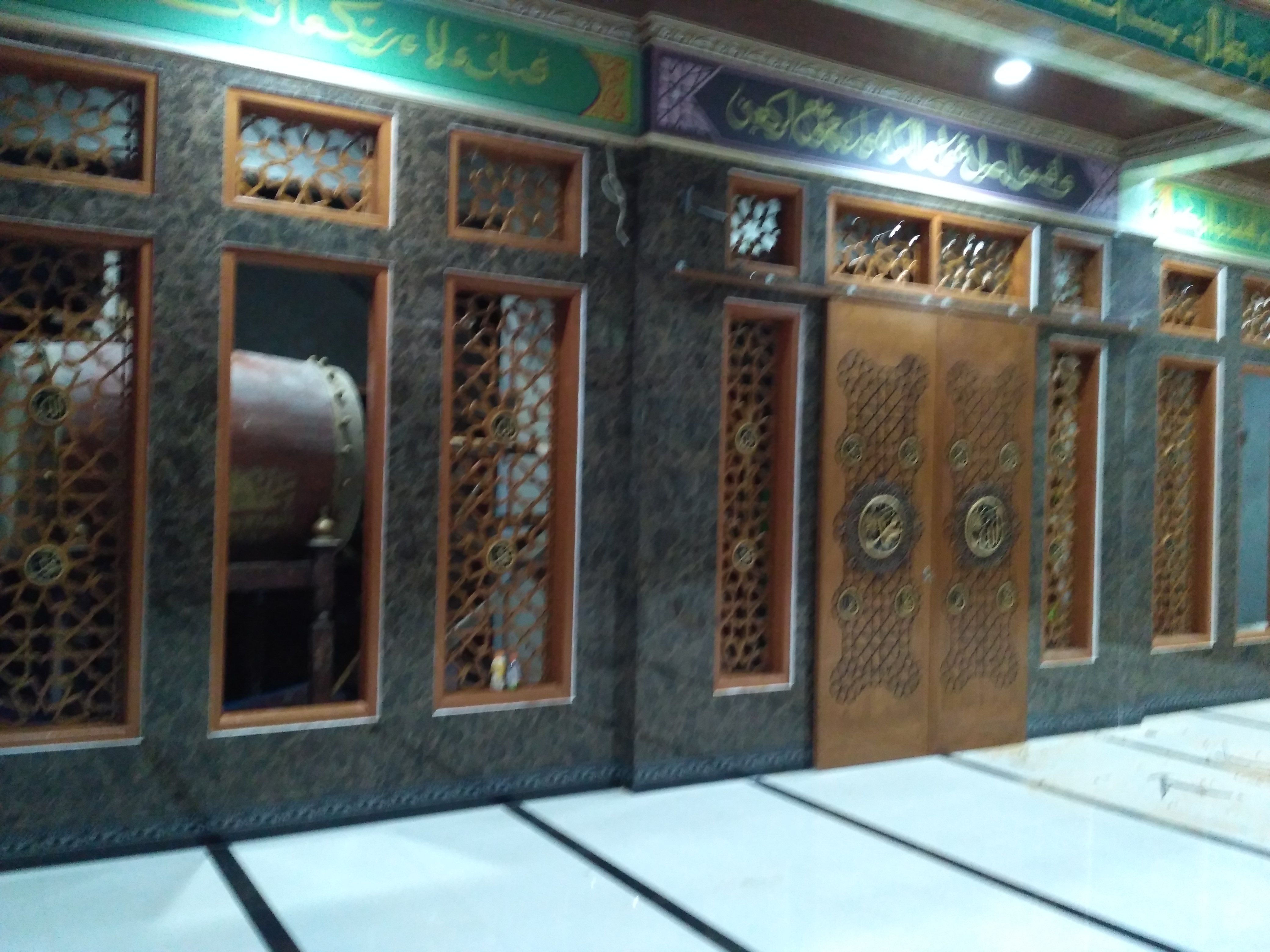 Pintu JatiUkir Ornamen , Berbahan Jati (TPK Perhutani) dengan dominasi Ukir Ornament Arabic di kedua sisinya (kalau di kehendaki, ukiran bisa di salah satu sisi pintu : luar atau dalam pintu) dan Tulisan Kaligrafi Ukir Lafadz Jalalah dan Muhammad.